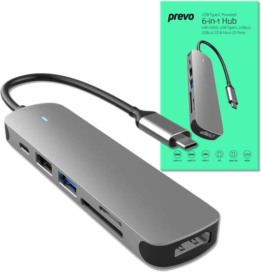 USB-C 6-Port Hub Adapter Introducing the Prevo USB-C 6-in-1 Hub! With HDMI, USB 3.0, USB 2.0, Type-C, SD, and Micro SD ports, this hub offers seaml...