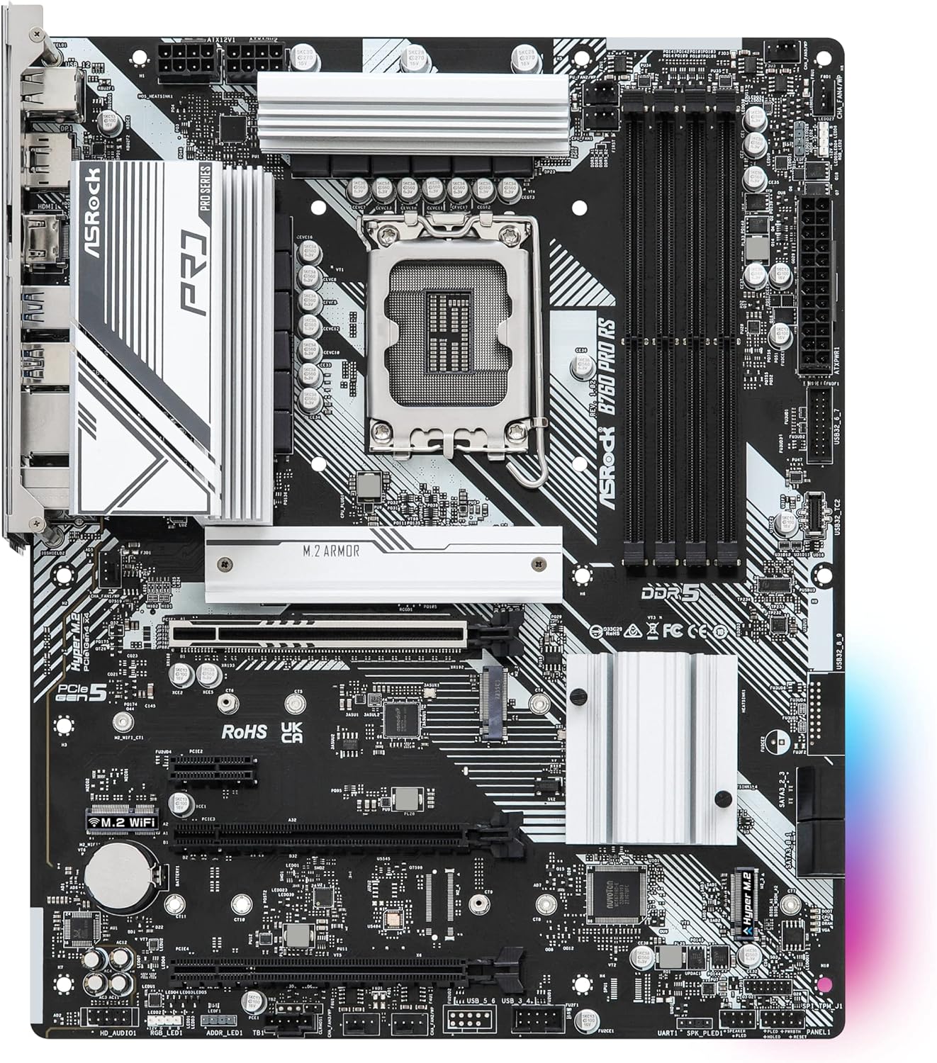 Asrock B760 Pro RS Gaming Motherboard, Intel B760, 1700, ATX, 4 DDR5, HDMI, DP, eDP, 2.5G LAN, PCIe5, 3x M.2, RGB