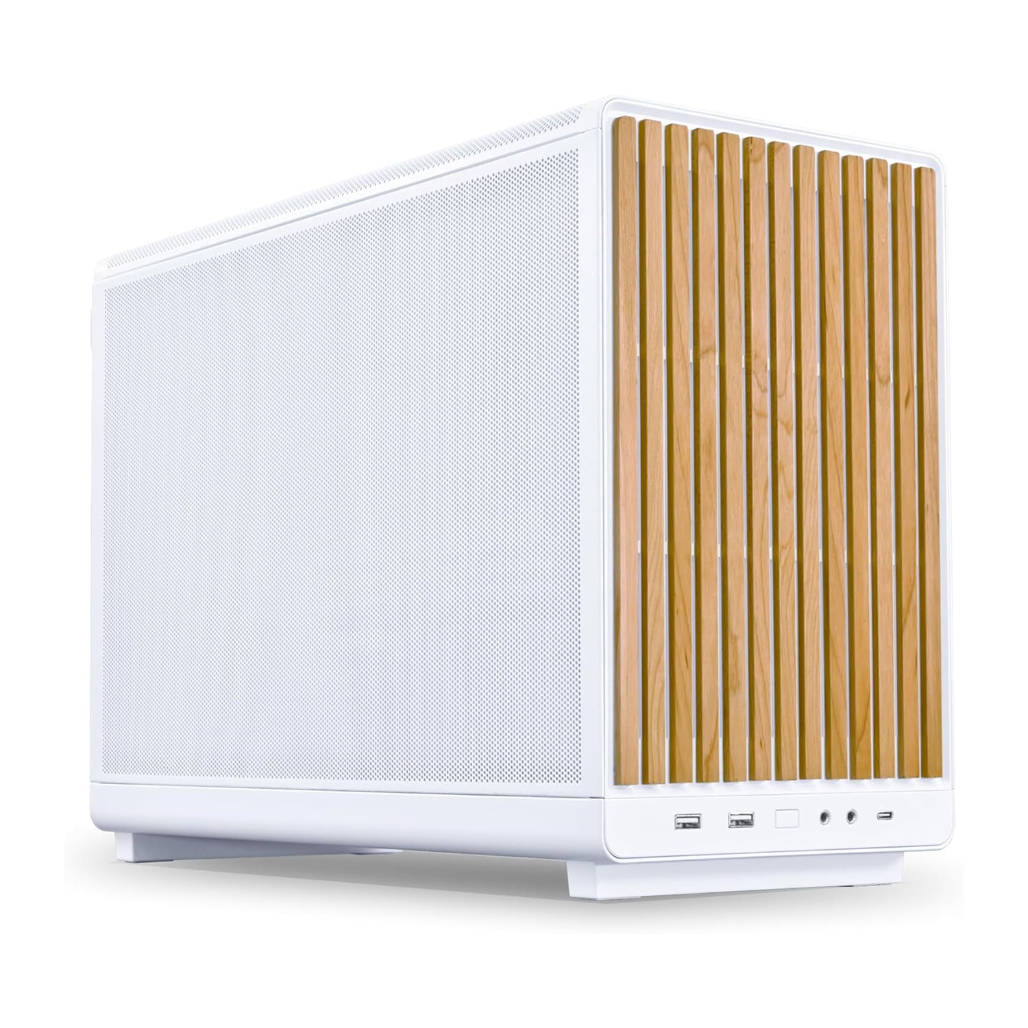 The Lian Li A3 mATX is a meticulously crafted small form factor gaming case combining premium wood accents with a durable steel mesh structure. Designed for mATX motherboards, it offers optimal airflow and efficient cooling in a compact footprint. Its white finish and elegant wood detail create a sophisticated aesthetic while maintaining robust build quality. Ideal for gamers seeking a balance of style, performance, and space-saving design, this chassis supports high-performance components within a refined and practical enclosure.