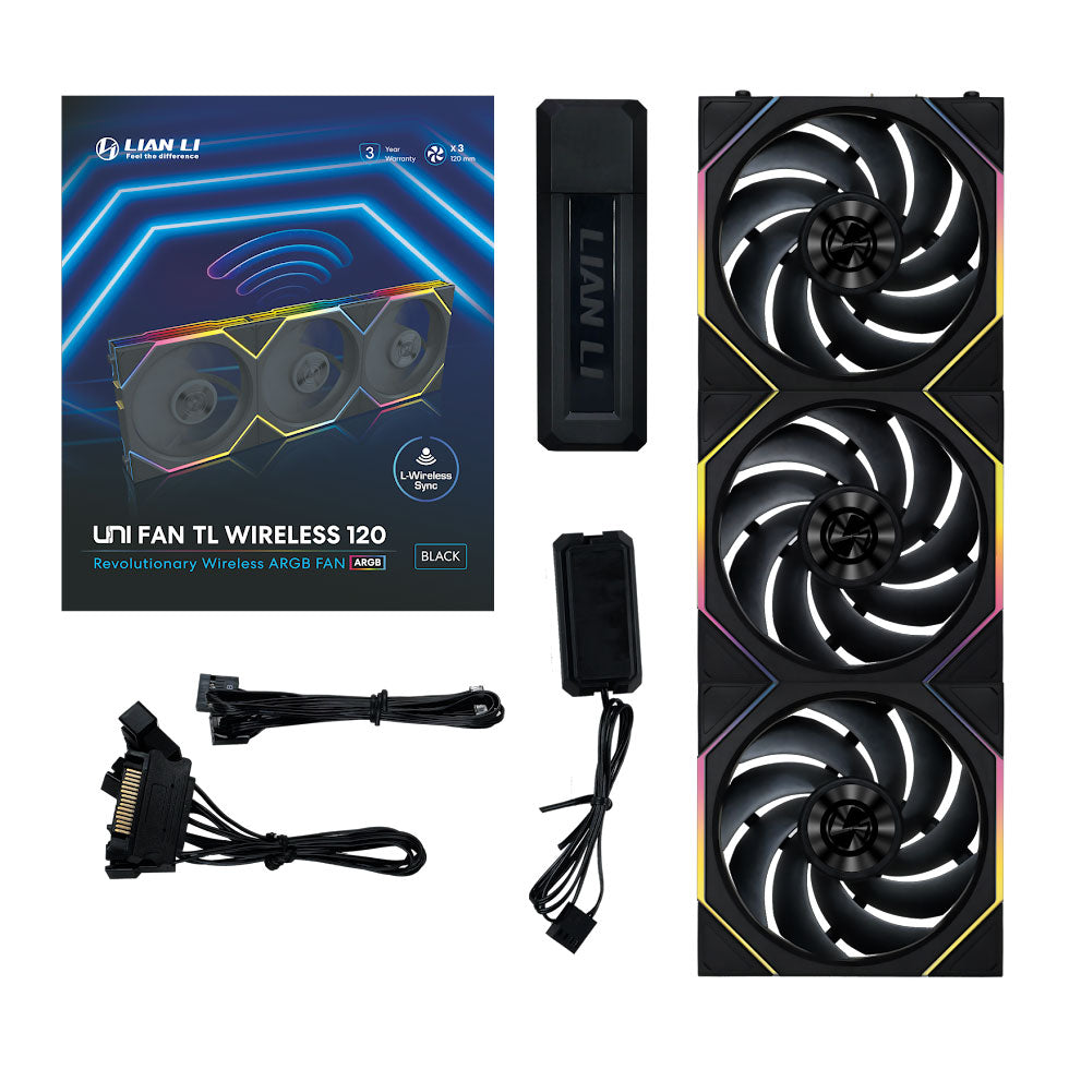 Lian Li UNI TL Wireless PC Case Fan 120mm ARGB PWM Fan Black, 3 Pack with L-Wireless Hub