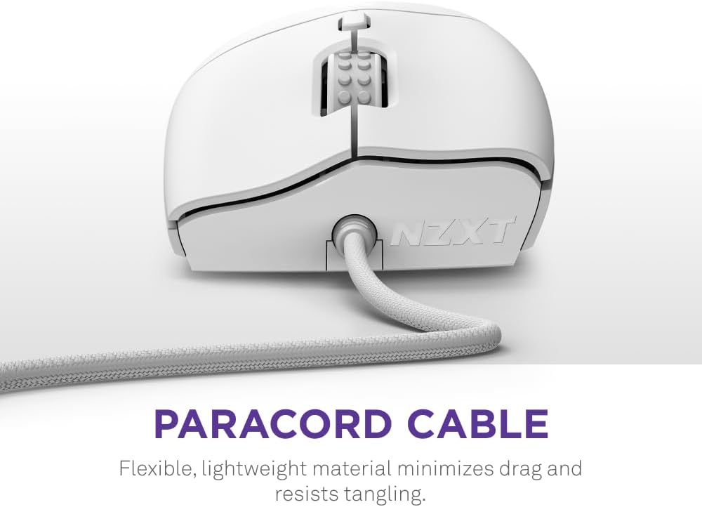 NZXT Lift 2 Ergo Lightweight Ergonomic Wired Gaming Mouse, Optical Switch, White