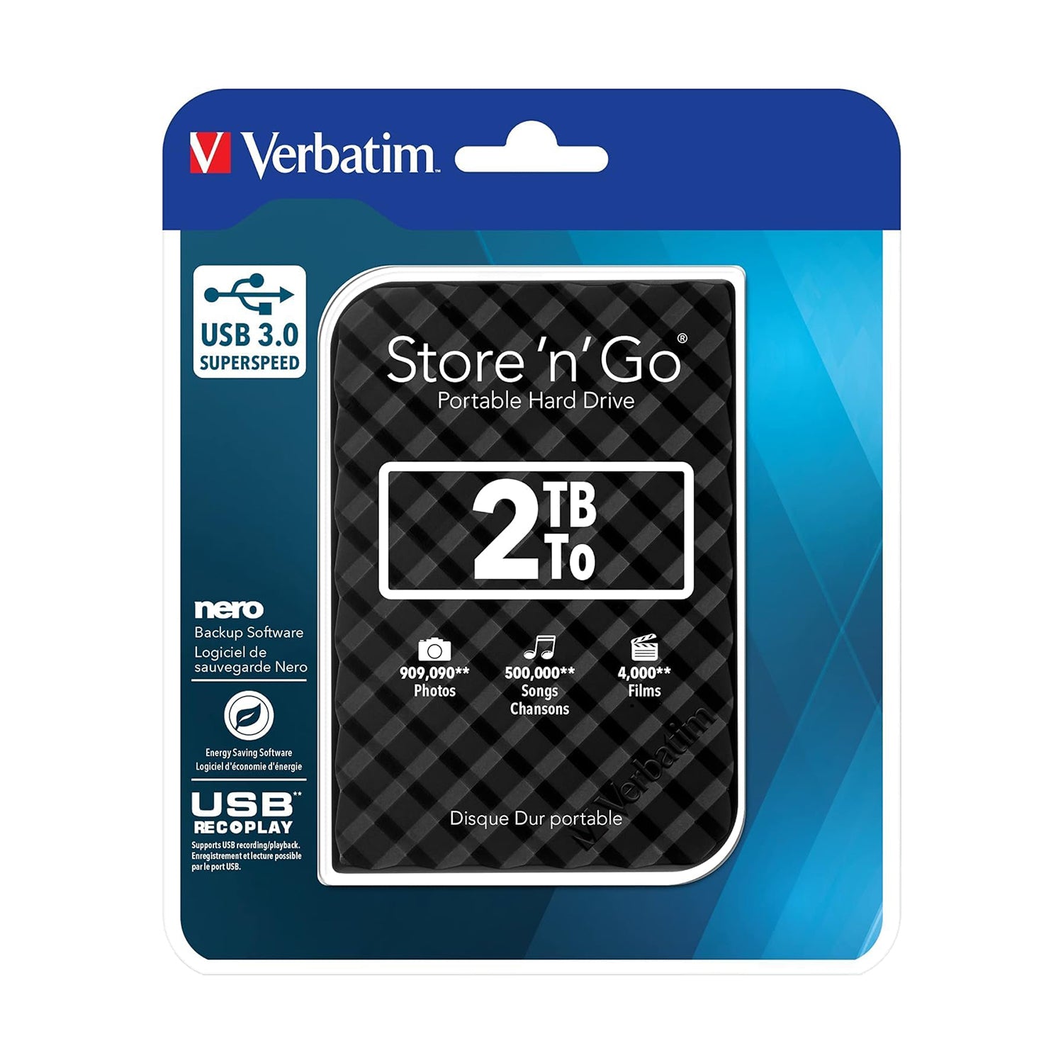 Verbatim 2.5" 2TB Portable HDD, USB 3.0, Hard Drive, External Storage Black